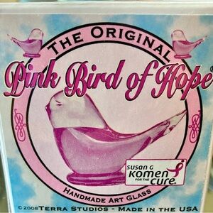 Pretty pink glass figurine shares a message of hope & love. From Terra Studios in Fayetteville, AR. Like new in a box.
