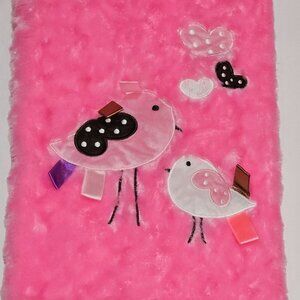 Pink Birds Hearts Tags Fleece Baby Blanket Lovey SOFT Manhattan Toy Co 118620