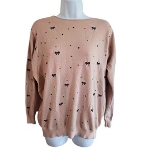 Pink Black Bow Beaded Sweater Women’s Large Preppy Soft Knit Pullover Coquette
