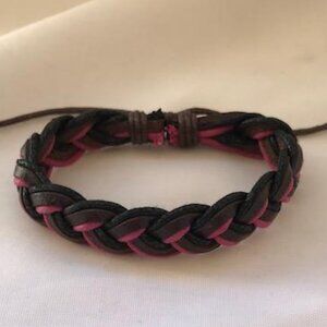 Pink Black & Brown Braided Leather Handmade Bracelet Adjustable Wristband