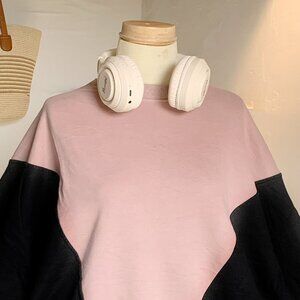 Pink Black Color Block Puff Sleeve Sweatshirt