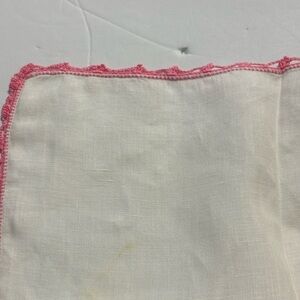 This handkerchief is so pretty. Let’s get the issues out of the way. There are some stains, the biggest is obvious. There are a couple other small faint stains or discoloration at the top left hand corner, pictured. Barely noticeable, but there. I did not attempt to wash this hanky. I didn’t want to ruin the crocheted look of the butterfly. This was purchased at a resell shop in rural Alabama, close to Birmingham. All the proceeds went to a pet shelter, so I had to buy something and this just sang to me. Just so perfect for so many things!