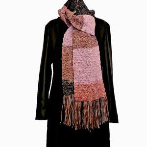 Pink Black Handmade Scarf 108" x 7" Crochet Knit Winter Warm Long Christmas Gift