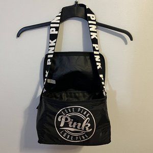 This black lunch bag is insulated and the brand PINK. The lunch bag is in great condition.