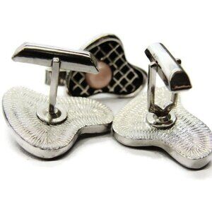 Step up your formal game with this Pink, Black & Silver-Tone Cufflinks & Clasp Checkered Set. Unbranded and vintage, these bullet back cufflinks are perfect for any tux shirt or suit. Material and color are unknown, giving them a unique gold look.