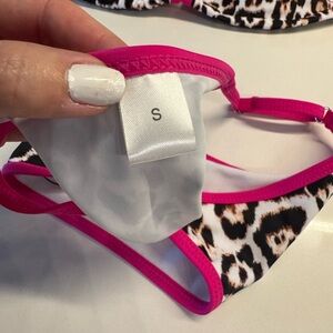 Pink Black White Leopard Thong Bikini Padded Top Size Small New NWT