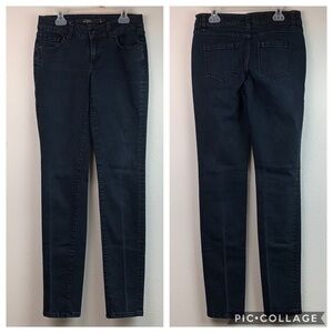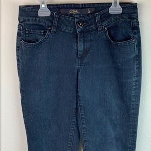 Lightened to show details, these are black wash jeans in excellent used condition.
