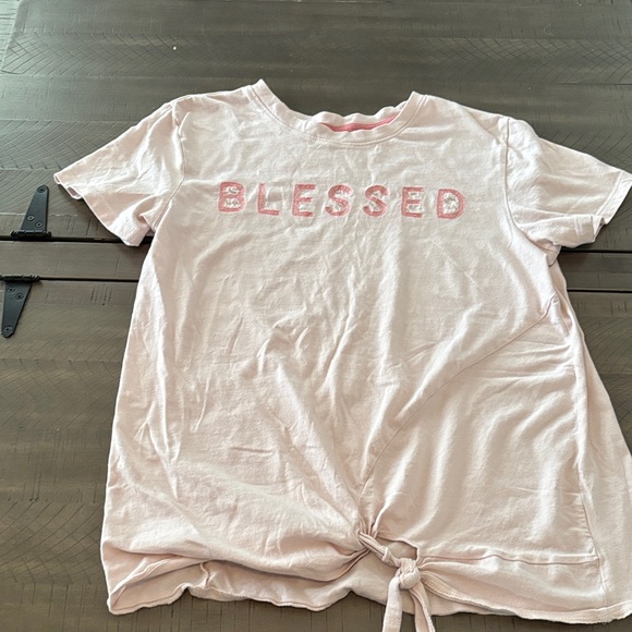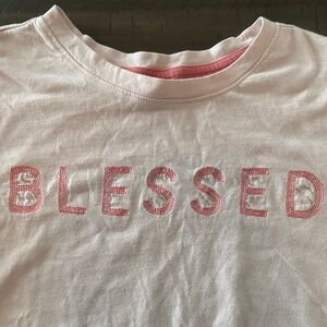 This charming pink t-shirt features a 'Blessed' print, perfect for everyday wear. Soft and comfortable, it's a delightful addition to any wardrobe.
