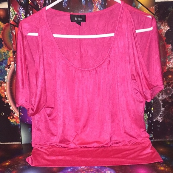 Beautiful rose pink blouse with a glistened finish. There are slits down the quarter sleeves! Says L but fits M.
