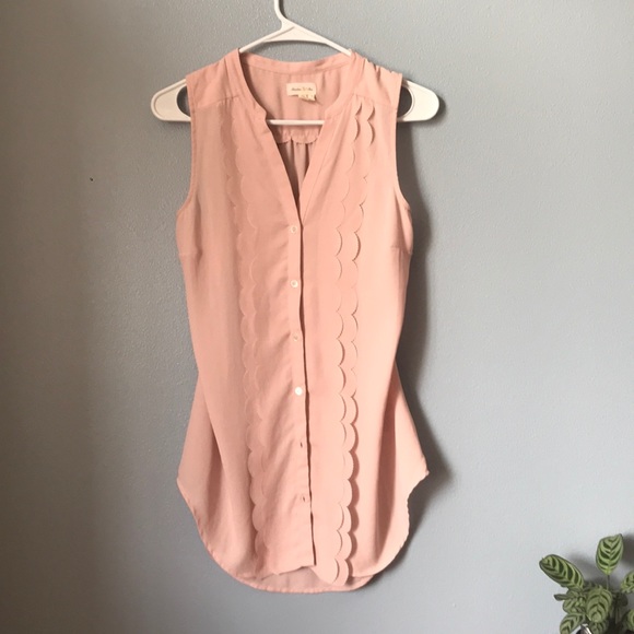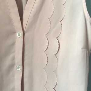Light pink, tank top, light weight, fun decorative scalloping, no snags and I’m great condition