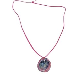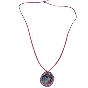 Pink Blue Air Dry Metallic Handcrafted Faux Leather Necklace