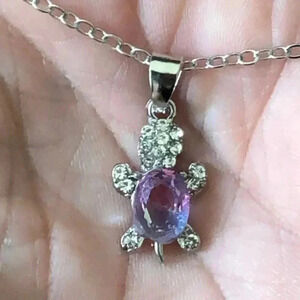 Pink & Blue Crystal Stainless Steel Turtle Tortoise Necklace Earring Set NWT