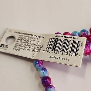 features a playful mix of pink and blue beads, creating a vibrant and eye-catching design
