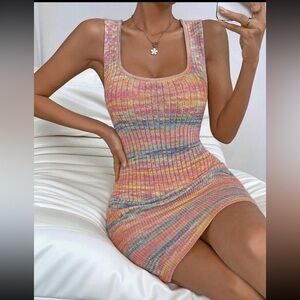 Pink Blue Yellow Orange Small Space Dye Sleeveless Tank Bodycon Sweater Dress