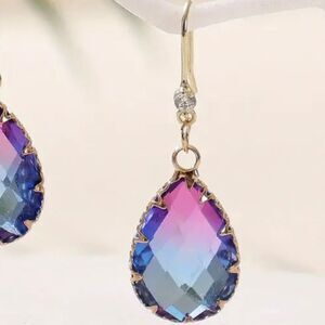 Blue Pink Ombre Tear Drop Dangle Earrings..xo