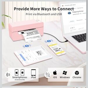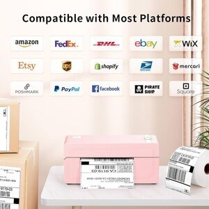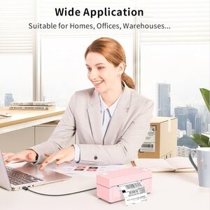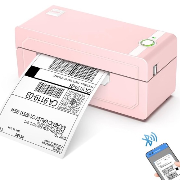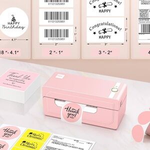 Compact pink label maker with Bluetooth connectivity. Ideal for printing shipping labels and stickers.