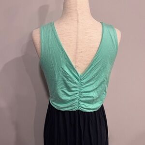 This elegant maxi dress features a refreshing mint top paired with a classic blue skirt. Perfect for any occasion, it offers a stylish and comfortable fit.