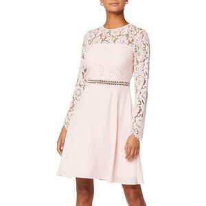 Women's Elegant Romantic Cocktail Lace Cocktail Party A-Line Long Sleeve Classy Pink Blush Dress SIZE XXL