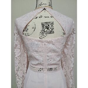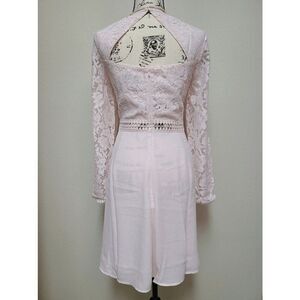 Pink Blush Lace Cocktail A-Line Long Sleeve Elegant Romantic Classy Dress XXL NW