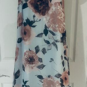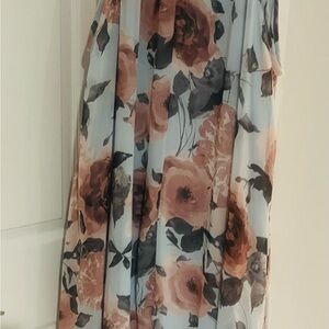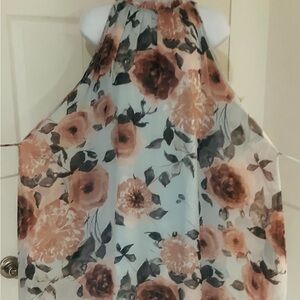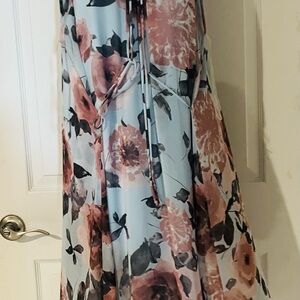 Elegant floral halter maternity dress with a flowing design. Perfect for any occasion. Designed to be worn before, during and after pregnancy.