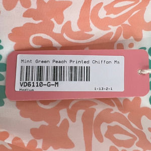 Pink Blush Maternity Mint Green Peach Printed Chiffon Midi Dress Lined Medium