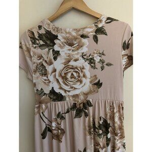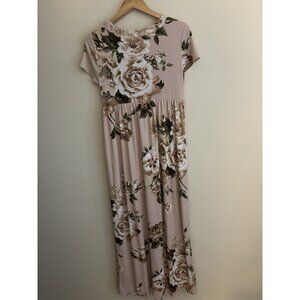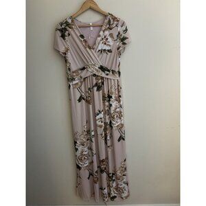 Pink Blush Pink Roses Floral Maxi Long Short Sleeve Dress Size Large Maternity