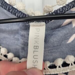 Pink Blush Womens Sz S Loose Fit Sleeveless Blouse Navy Blue Floral