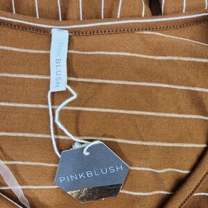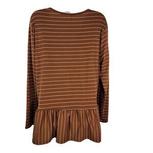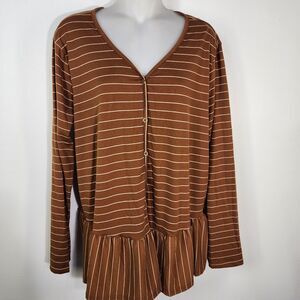 Pink Blush Womens Top Large Button V Neck Brown Striped Peplum Hem Long Sleeve