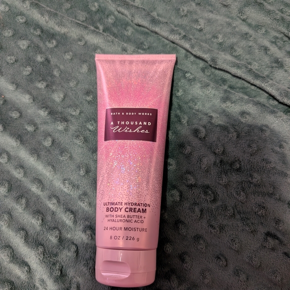 Experience luxurious hydration with Body Cream. Infused with shea butter and hyaluronic acid, this pink cream provides 24-hour moisture for soft, smooth skin. Brand new and unused, but got as a gift. Will be sealed when shipping!