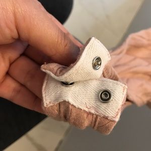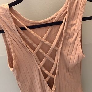 Baby pink Body Suit with criss-cross back detail. Button at the crotch. Comfortable and stretchy.