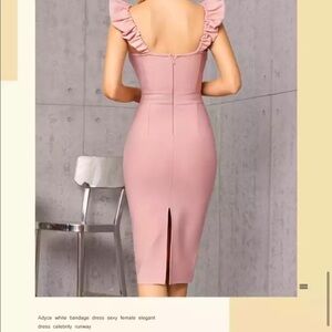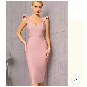 Pink Bodycon Bandage Dress For Summer Sexy Ruffles Sleeveless Midi v neck Size M