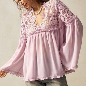 Pink Bohemian Women's V-Neck Loose Long Sleeve Blouse