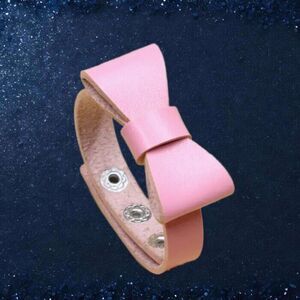 Pink Boho BOW Faux leather Snap Bracelet Adjustable SO CUTE!!