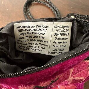 Beautiful Pink Boho Embroidered Floral Guatemalan Crossbody Bohemian Purse Zip Closure and Small Zip Pocket at back. Fringe trim. Will fit a smart phone.