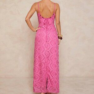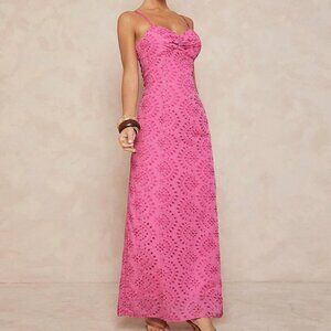 Pink Boho Embroidered Spaghetti Strap Maxi Dress
