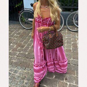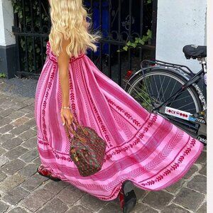 Pink Boho Women's Sleeveless Spaghetti Strap Flowy Beach Maxi Dress