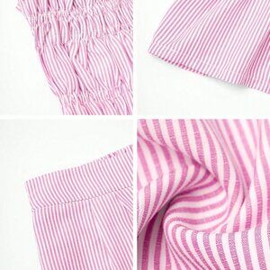 Pink Boho Womens Tropical Beach strapless Striped Bandeau Top And Shorts Set
