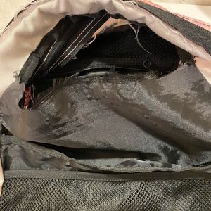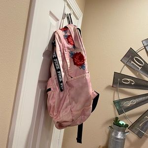 Book Bag by Pink, Beautiful Red Roses Detail, Size: Large. Great Bag, Good Condition But Worn. Notice The Tear On The Inside Pocket .