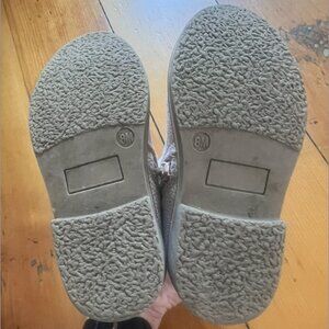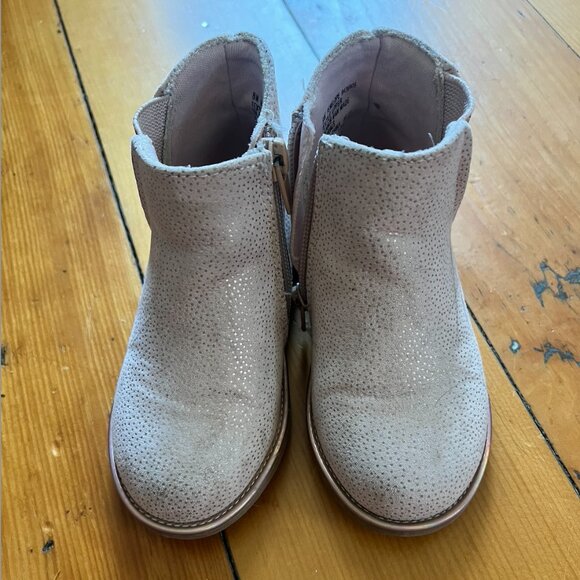 Pale pink boots with specs of shimmer throughout. Easy for your little to get on and off independently. They're just taking up space in my home--I want them gone, make me an offer!