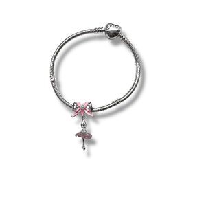 Pink Bow & Ballerina S925 Sterling Silver Pandora Moments Compatible Charm