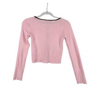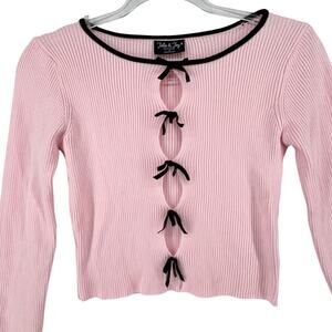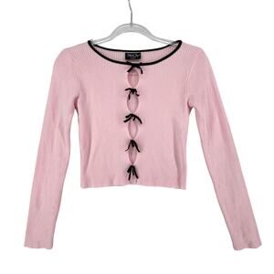 Pink Bow Front Ribbed Knit Top Long Sleeve Coquette Balletcore Parisian S