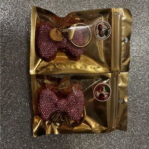 Add a touch of sparkle to your accessories with this pink bow keychain. Perfect for adding charm to your keys or bag. ( 15.00 both)