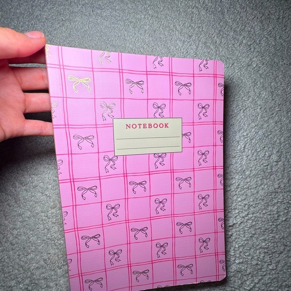 Charming pink notebook with bow design. Perfect for notes and journaling.