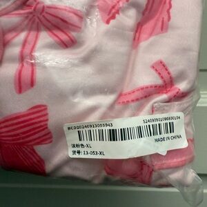 Cozy pajama set with pink bow print. Perfect for lounging/galentinetines basket for bestie!