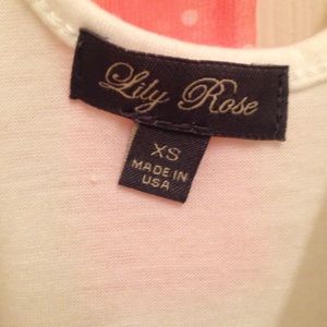 Cute white tank top with polka dot bow across the back.
