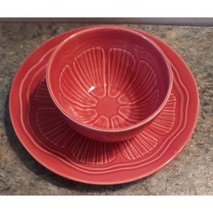 Pink Bowl and Lunch Plate Grasslands Road Citrus Design Ceramic