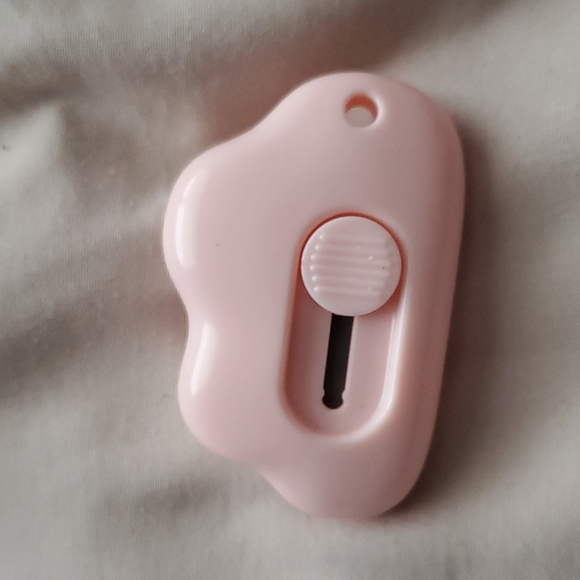 Pastel pink box cutter keychain in the shape of a cloud. Cute and functional!