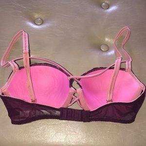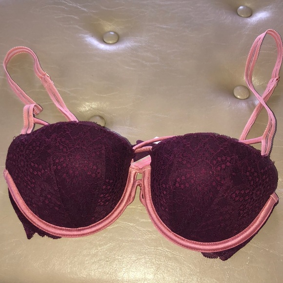 Sooooo cute! It’s a burgundy flowery lace with pink trim.