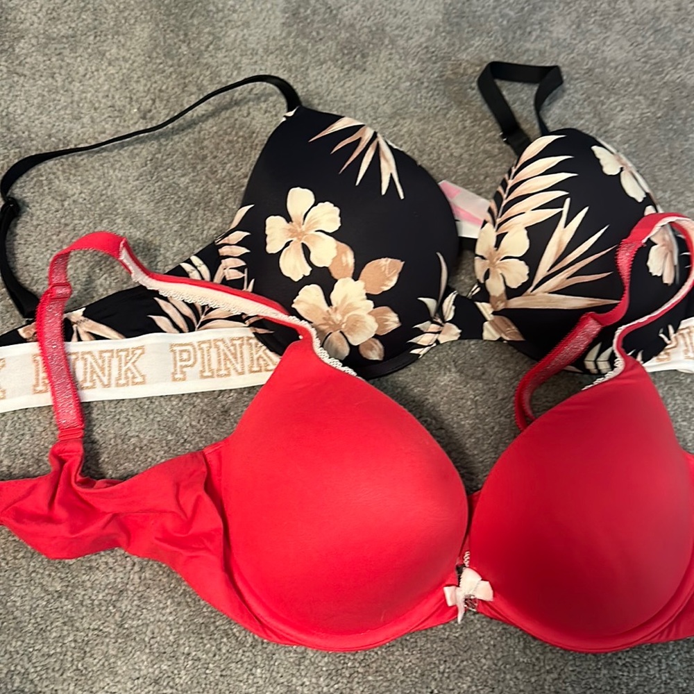 Both size 34d. Black one with Hawaiian flowers is new without tags and the other is like new. Push up bras.