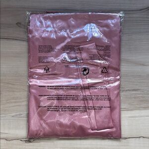 Elegant pink robe perfect for bridesmaids. Features a stylish design with rhinestone lettering in the back.
